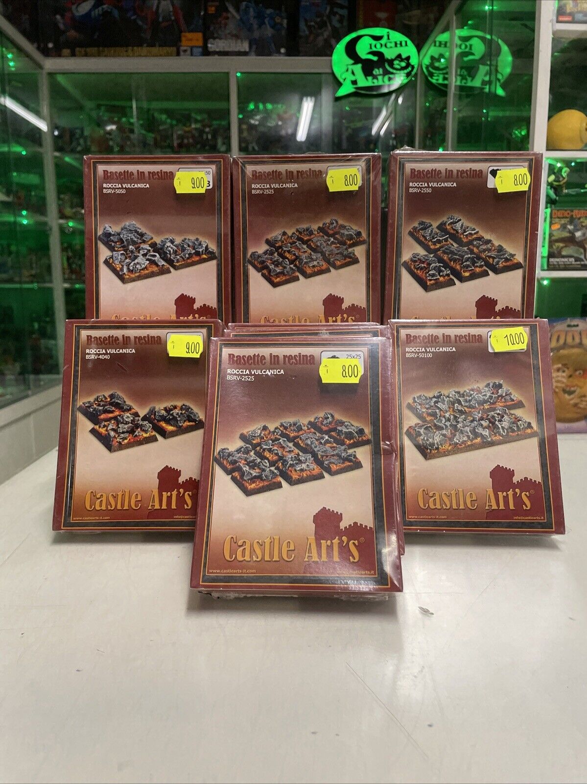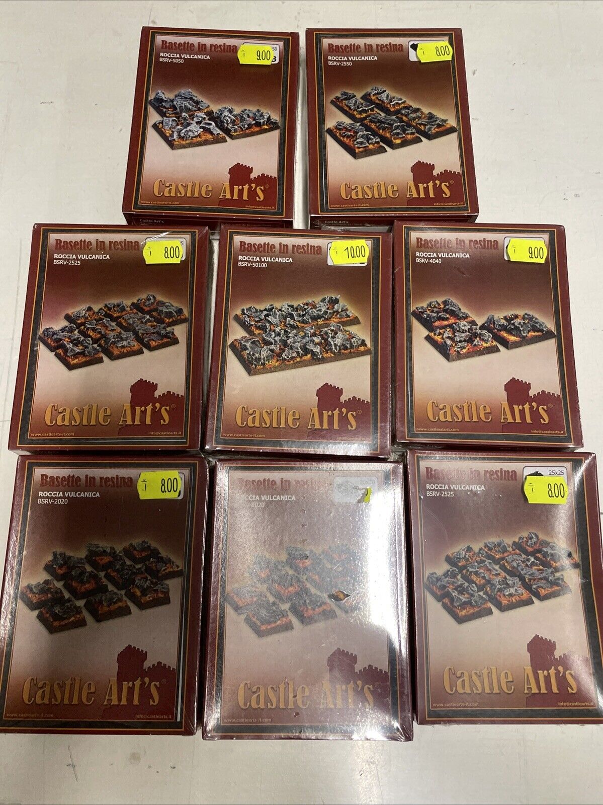 Set di 8 scatole contenenti varie basette in resina monocolore da verniciare, di diverse misure per figurini warhammer o simili in scala circa 1/55, in ogni caso le basette sia tonde che quadrate, rispettano la grandezza standard di quelle semplici usate per warhammer….