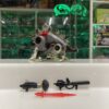Oggetto in ottime condizioni, completo di tutti gli accessori, perfettamente trasformabile e poco giocata, giunture piuttosto rigide. Nessuna rottura o sciupatura evidente. Adesivi belli. Il fucile inserendolo nel foro del pugno sta molto largo.