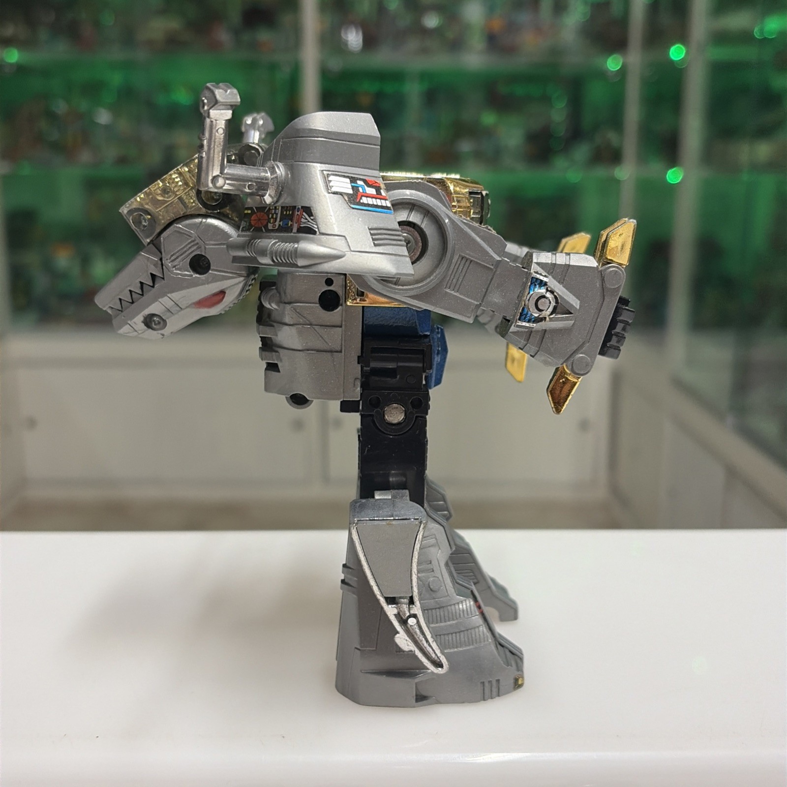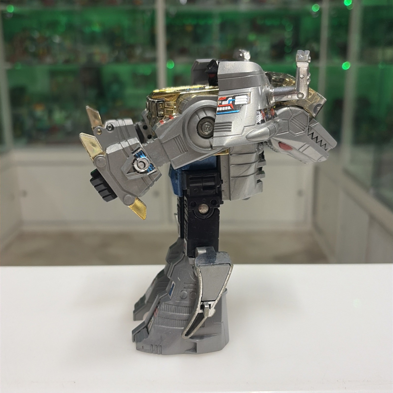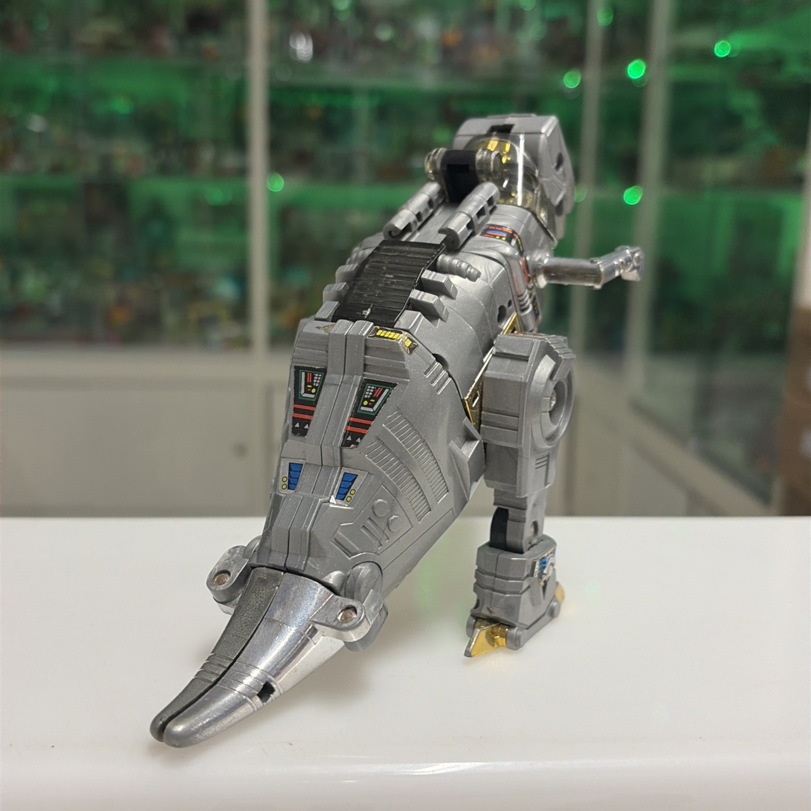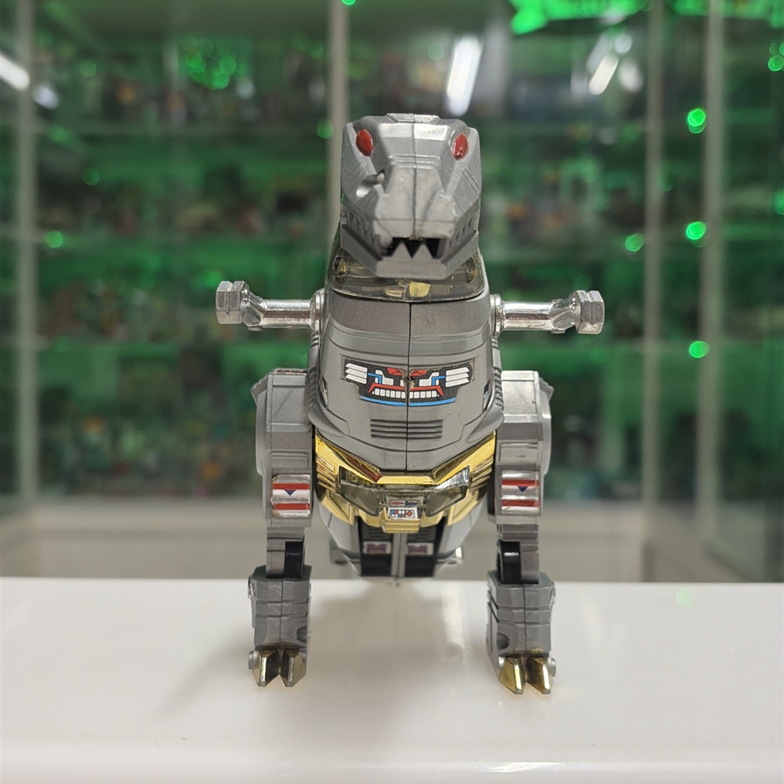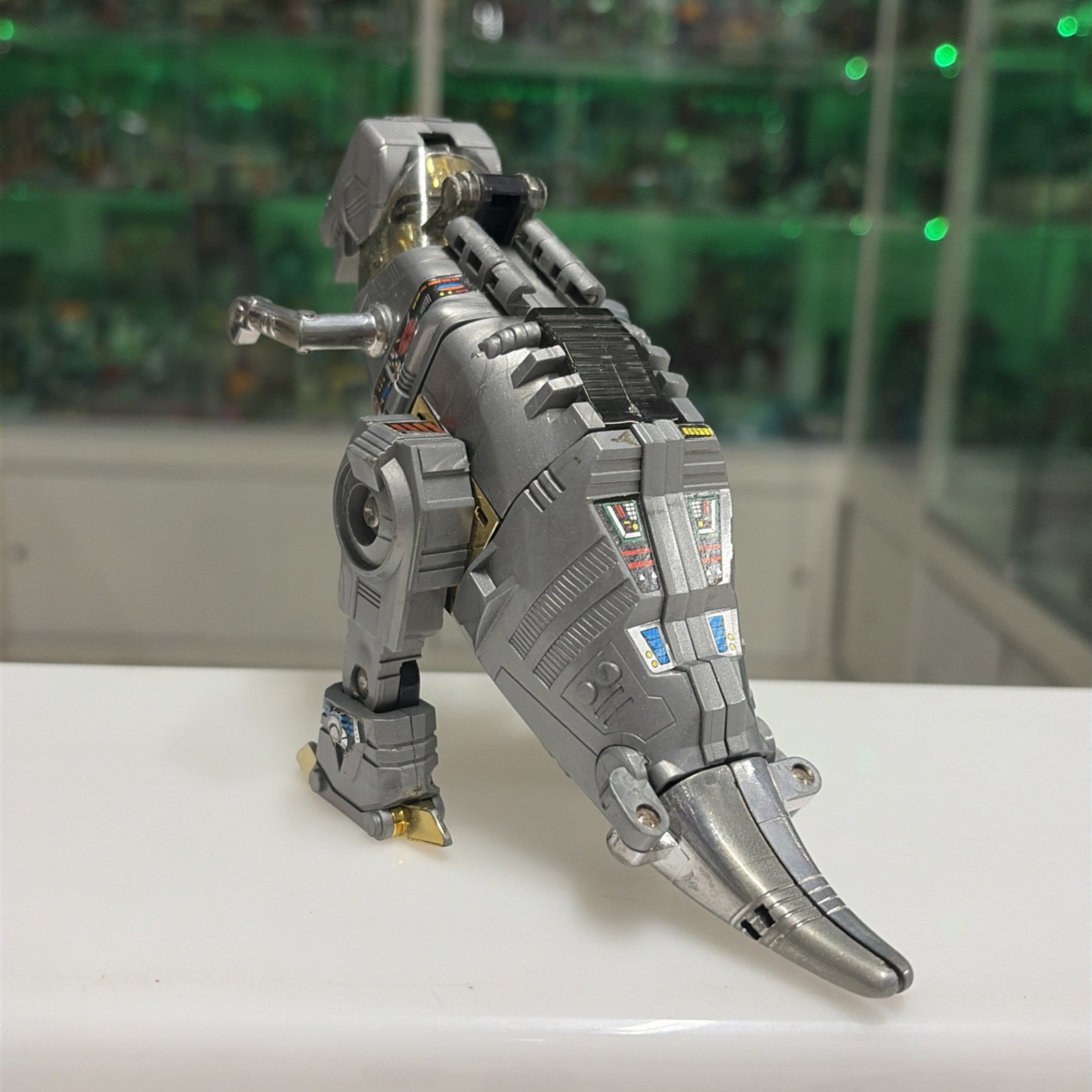 Oggetto in buone condizioni, giocato, completo di tutti gli accessori originali, perfettamente trasformabile . Presenta la rottura di uno dei due gancetti del collo del dino quando si chiude la testa, ma sta’ chiusa bene cmq . Il dianauta è mancante della parte calamitata e di uno dei due pernietti dove incastrano le calamite, la scatola esterna presenta svariati difetti, come da foto.