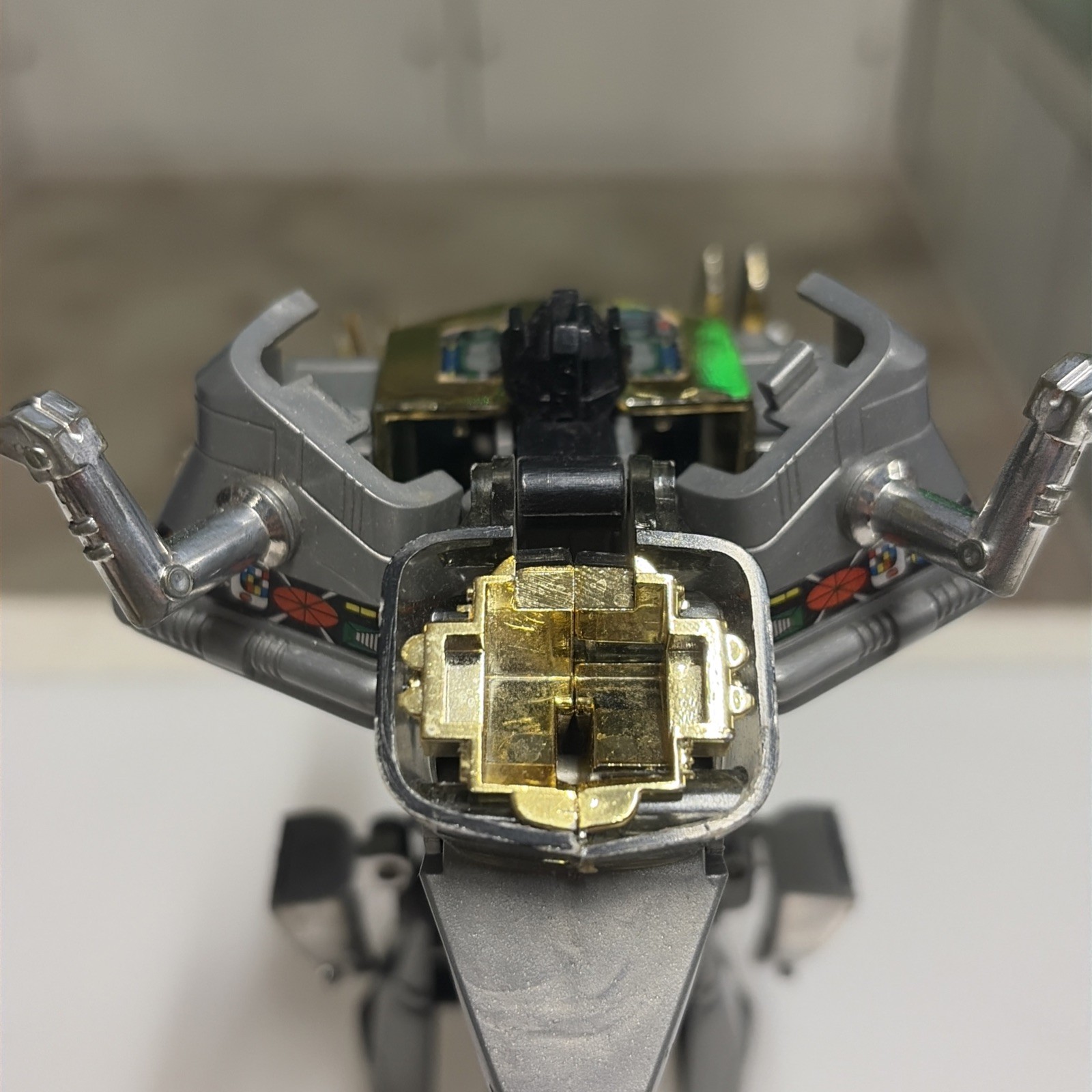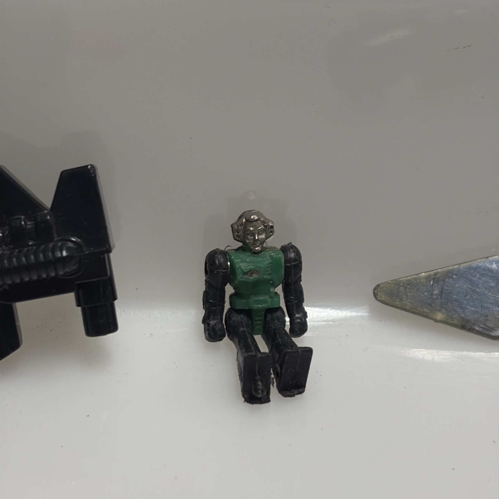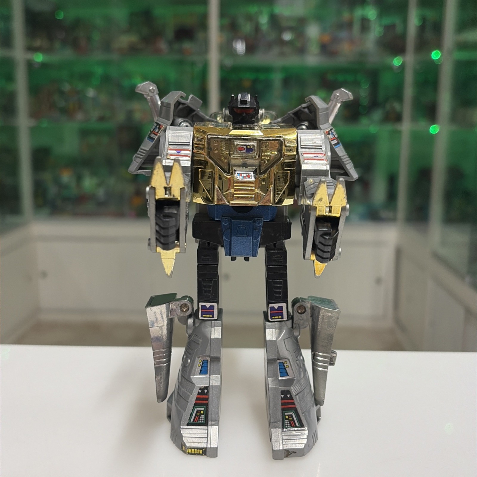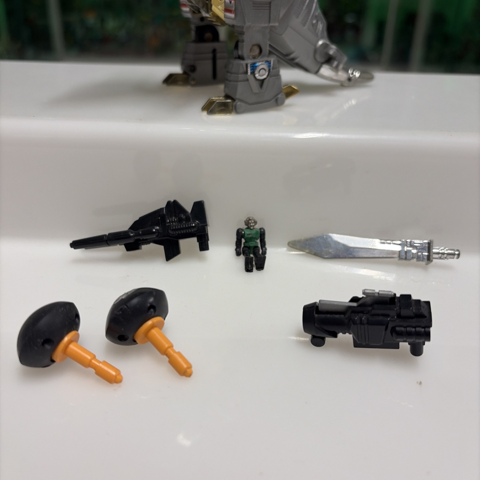 Oggetto in buone condizioni, giocato, completo di tutti gli accessori originali, perfettamente trasformabile . Presenta la rottura di uno dei due gancetti del collo del dino quando si chiude la testa, ma sta’ chiusa bene cmq . Il dianauta è mancante della parte calamitata e di uno dei due pernietti dove incastrano le calamite, la scatola esterna presenta svariati difetti, come da foto.