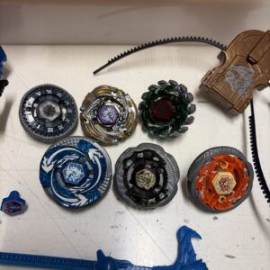 Lotto come da foto, arena in condizioni di usato, presenta leggere rotture in alto ma ancora usabile, 6 blade metal fusion 3 blade burst e blade sconosciuti, uno dei quali a forma di mostro, varii caricatori, e pezzi extra di ricambio, tutto usato ma senza rotture e funzionante.