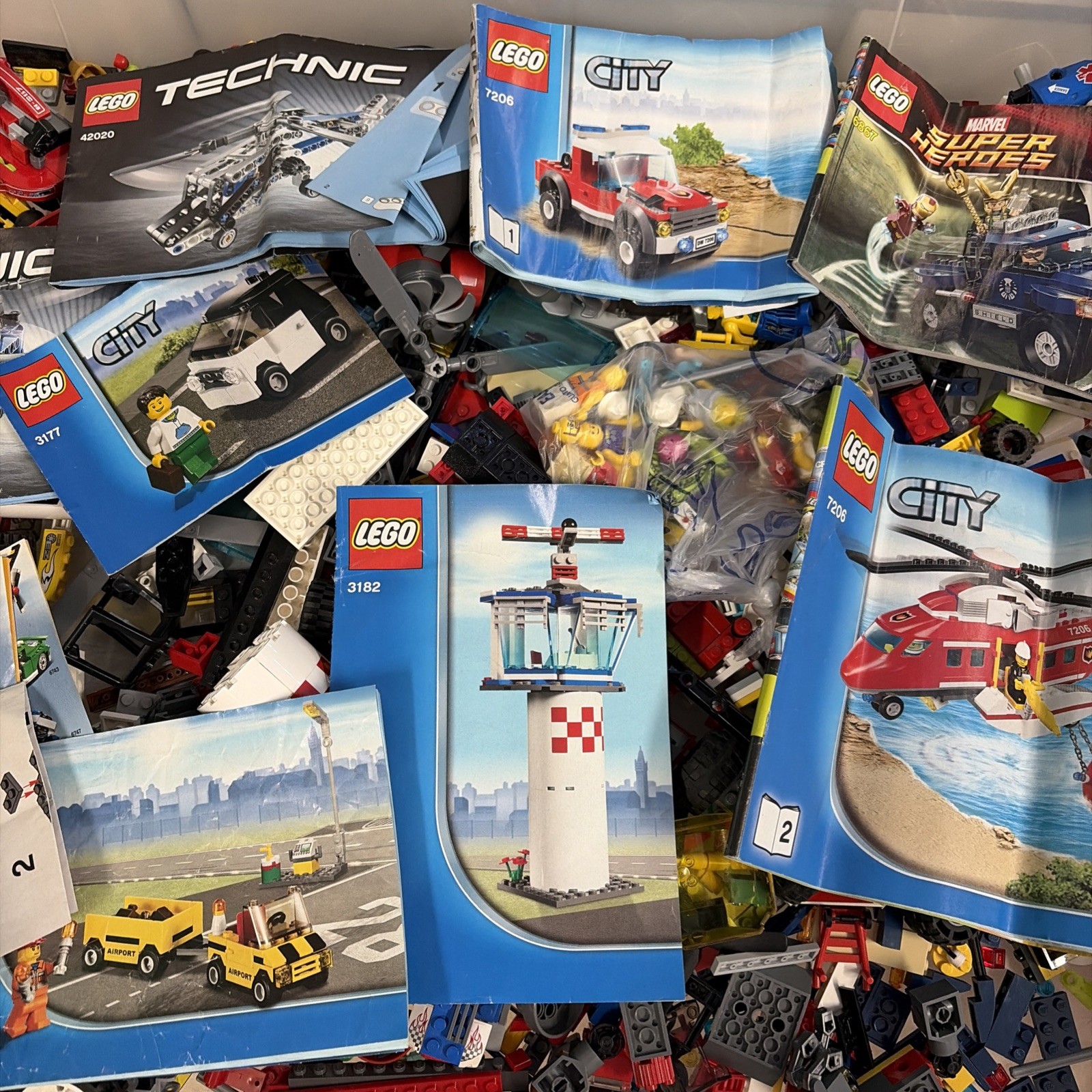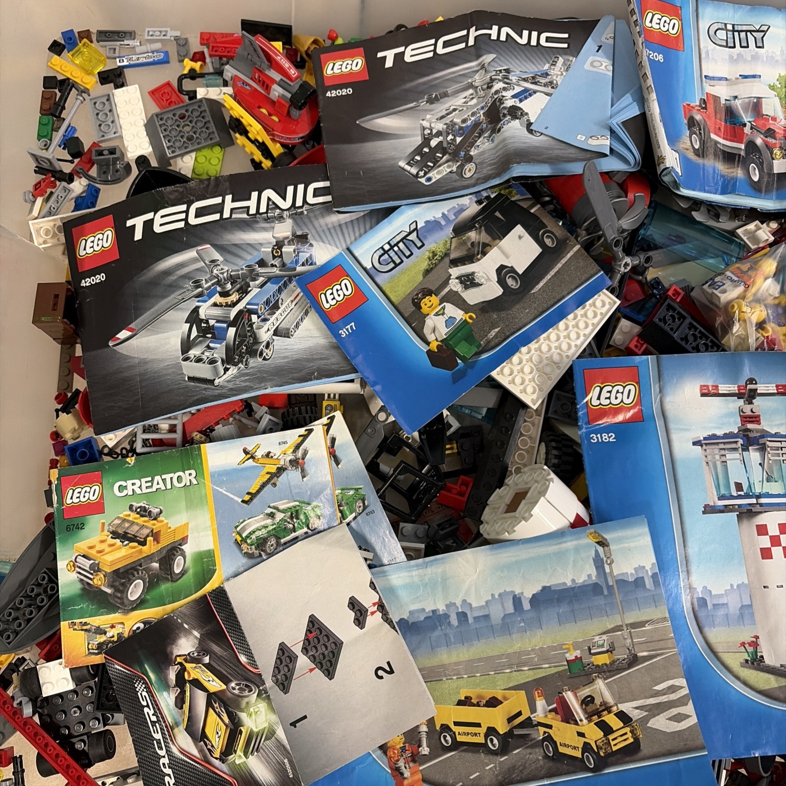 Lotto da 2 KG lego, unico propietario , NON setacciato ( non sono stati tolti i pezzi buoni da rivendere a se…) con alcune minifigure, tenuto bene ma giocato, potrebbe esserci dentro tutto quello che vedete nelle istruzioni , almeno ad occhio, ed anche di piu…. come da foto.