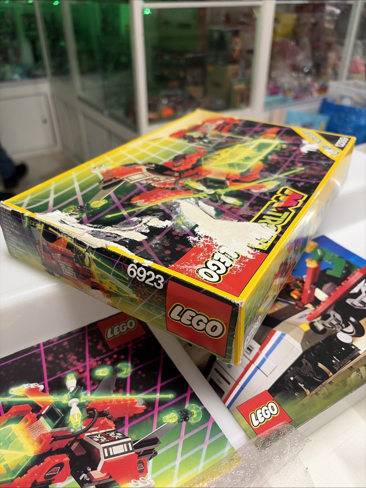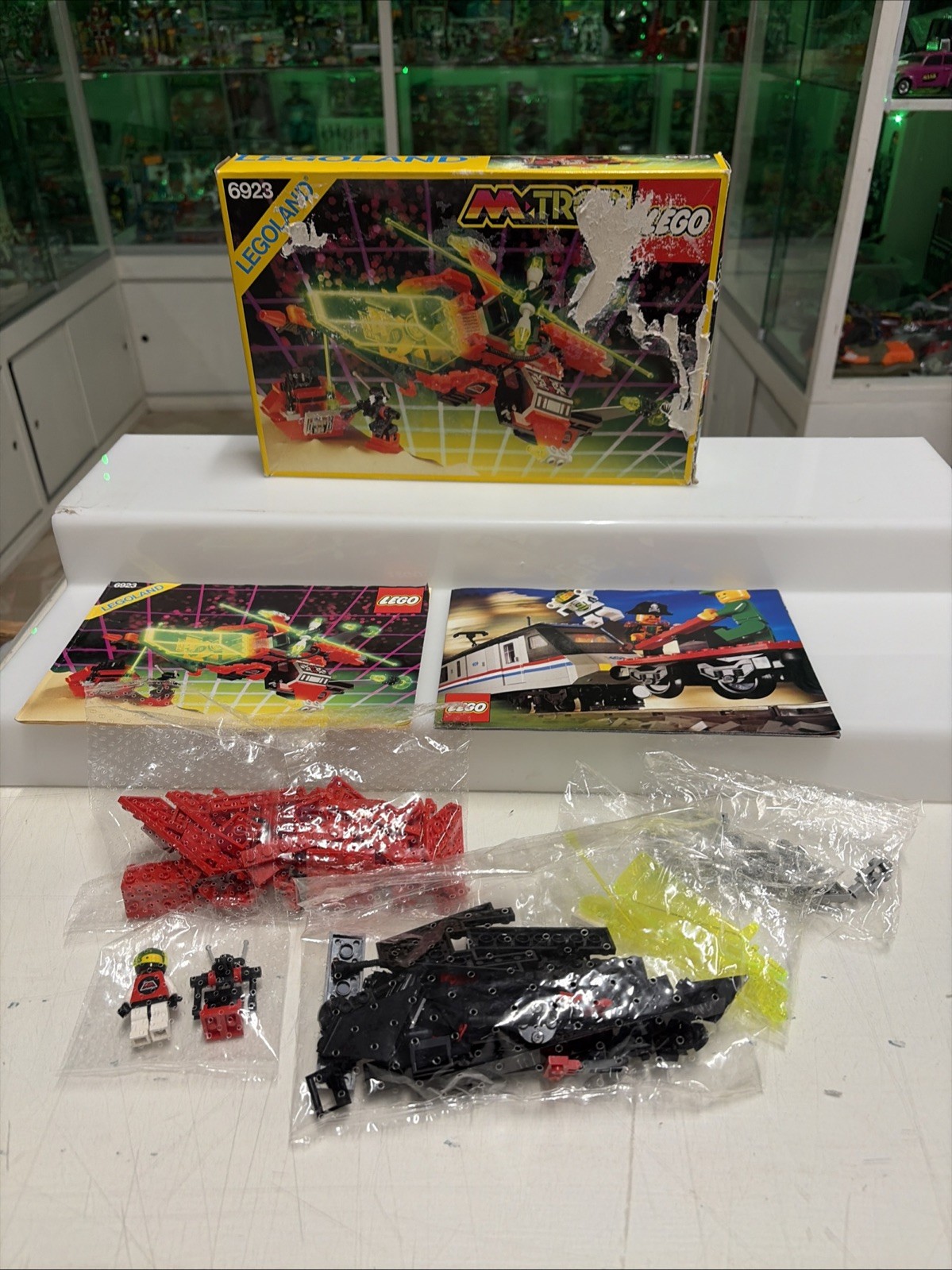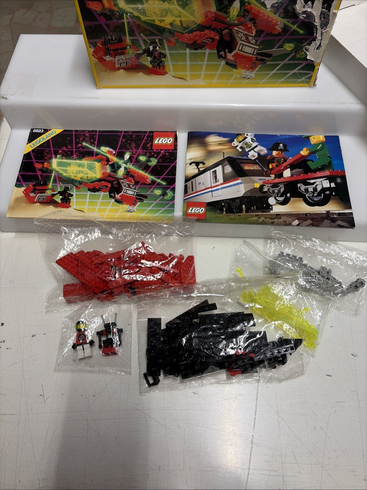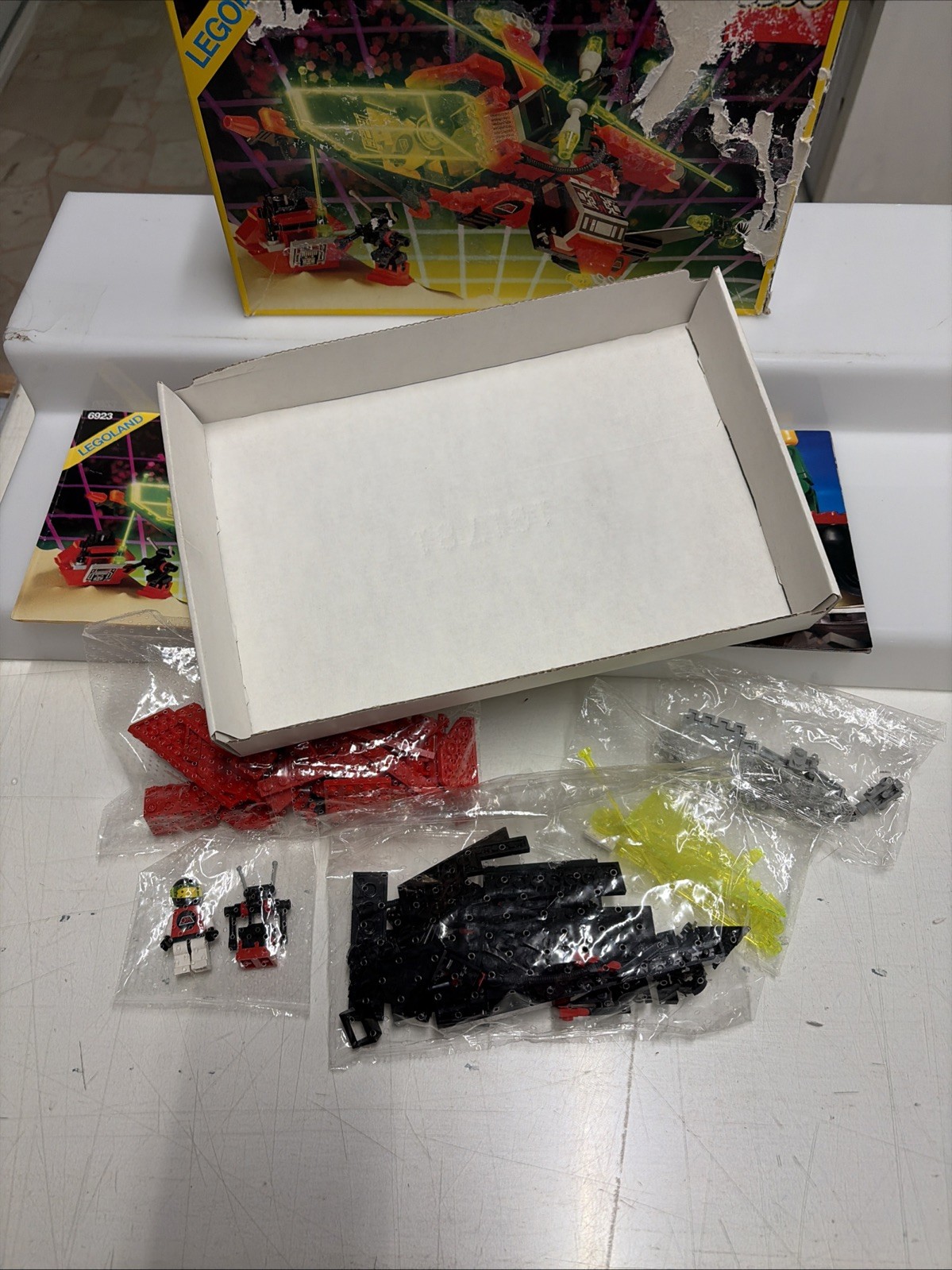 Set completo 100% in perfette condizioni senza segni da gioco, completo addirittura di buste originali traforate lego con istruzioni e catalogo, scatola esterna purtroppo gravemente danneggiata.