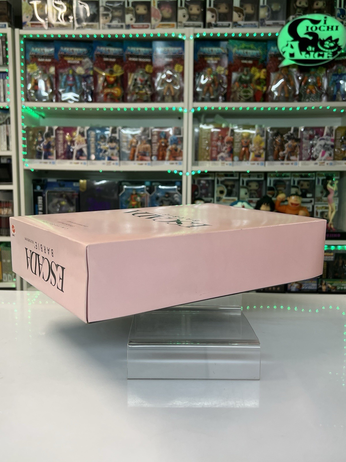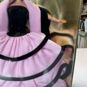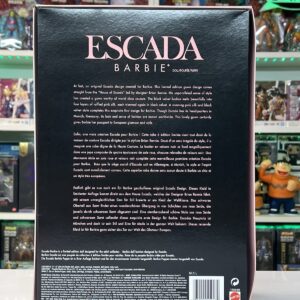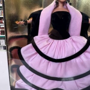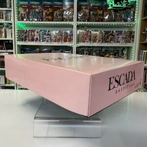 Un connubio perfetto tra l’iconica eleganza di Barbie e il lusso intramontabile della maison Escada. Disegnata dallo stilista Brian Rennie, questa esclusiva edizione limitata veste Barbie con un abito degno dell’alta moda europea: un sontuoso bustino in velluto nero che si fonde armoniosamente con le ampie balze in seta rosa, impreziosite da profili in velluto scuro. A completare il look, un raffinato stole in rosa seta e velluto nero, simbolo di charme e raffinatezza.
