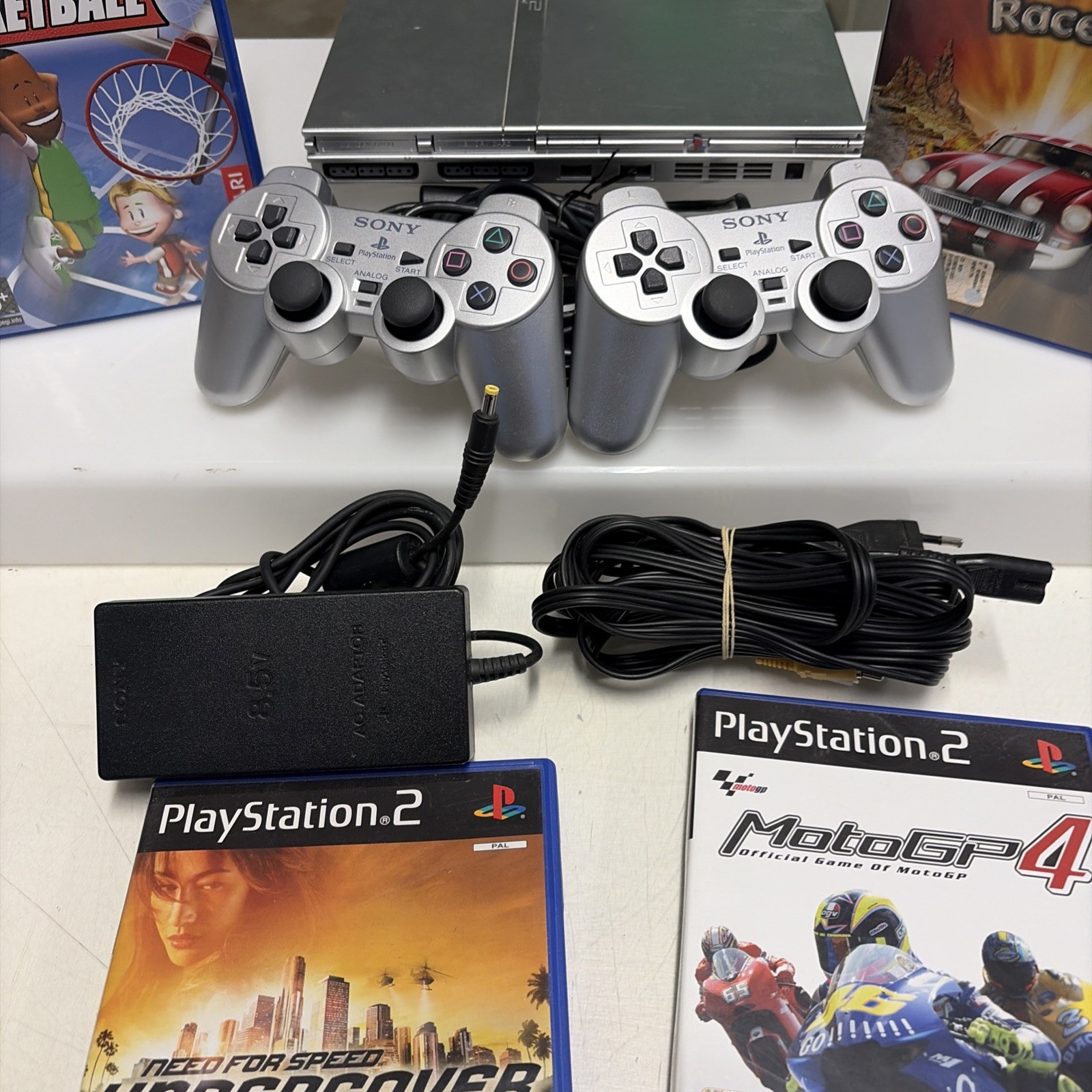Console silver edition in pèerfette condizioni, perfettamente funzionante con 2 pad e giochi come da foto.
